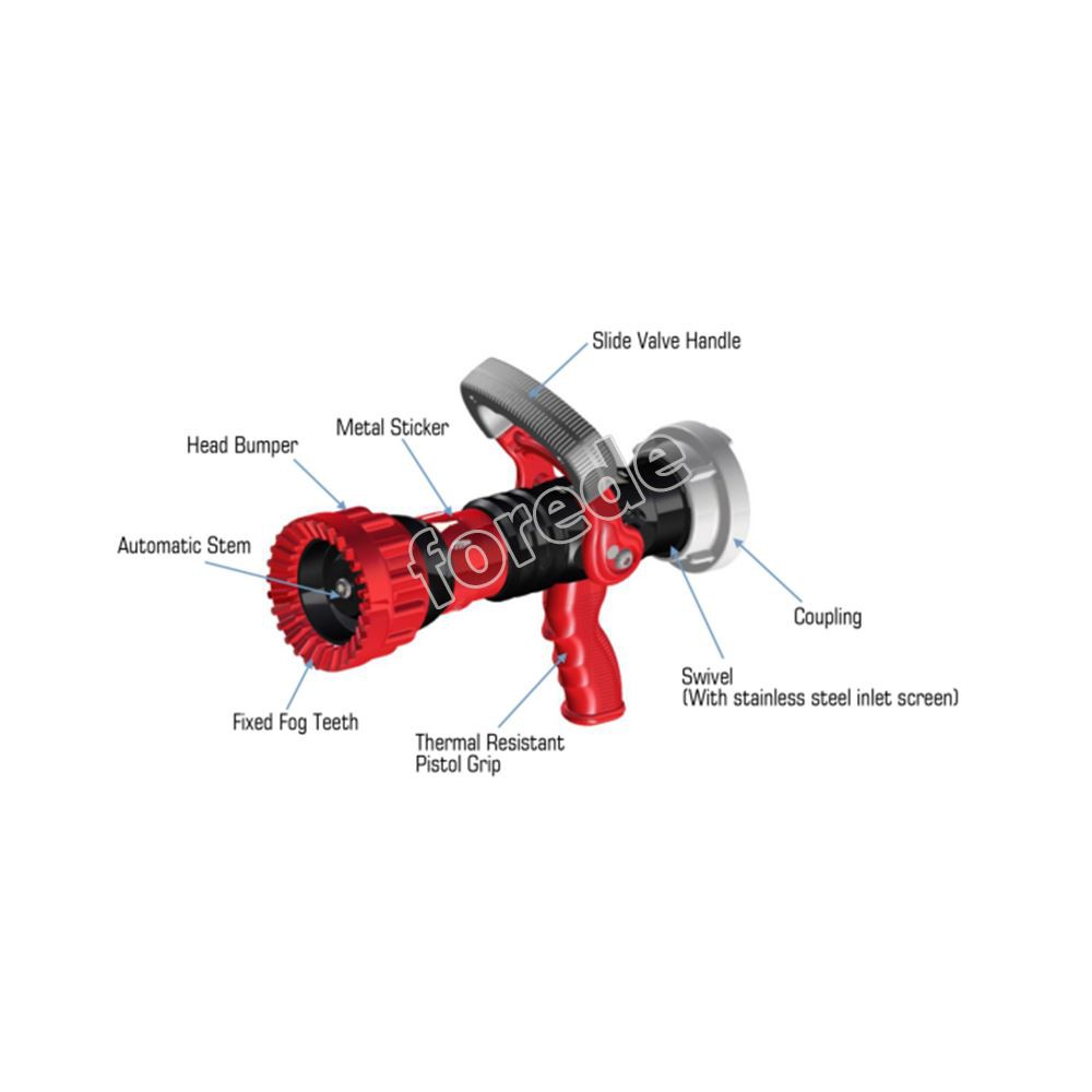2,5" Feuerdüse Bei Firefighter handelt es sich um eine Feuerlöschdüse mit automatischem Durchfluss. Diese Art von Feuerdüse kann den Wasserdruck, der durch den Feuerdüsenkörper fließt, automatisch einstellen und dann den Wasserfluss abschießen, um das Feuer zu löschen.